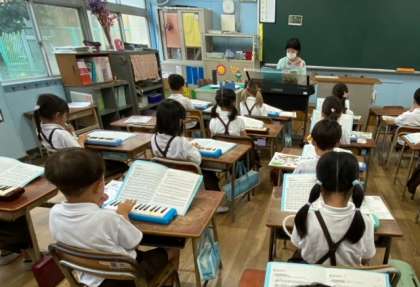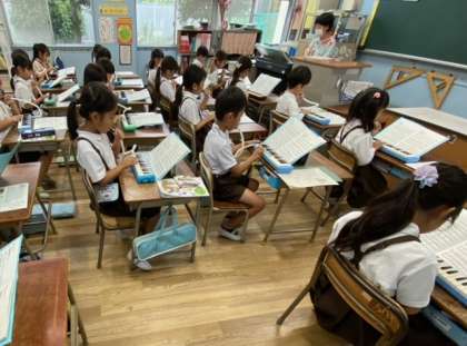 音楽では、鍵盤ハーモニカで、タンギングを使いながら演奏しました。