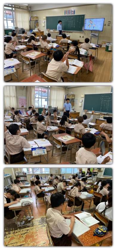 道徳では、「わりこみ」の話を読んで、良いことや悪いことについて考えました。