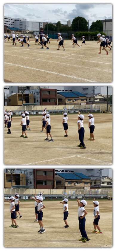 体育では、運動会で行う団体演技の練習をしました。
