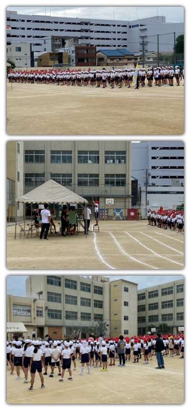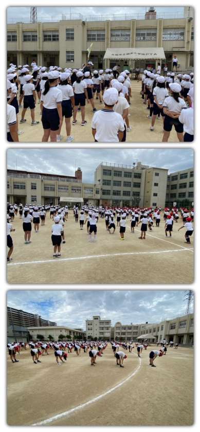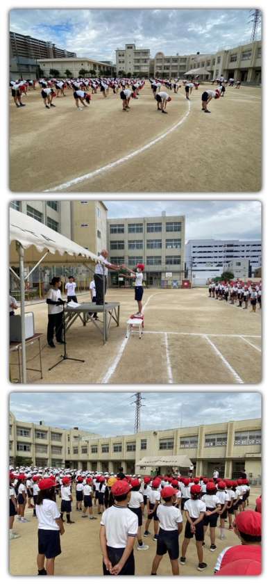 運動会の全体練習をしました。開閉会式の練習と体操をしました。
