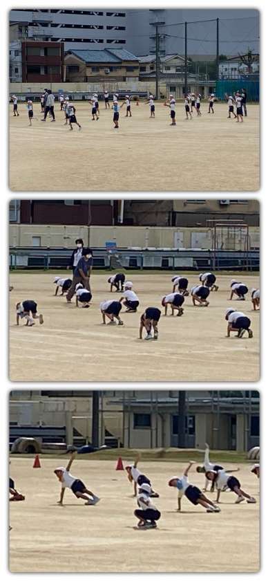 団体演技の練習をしました。自分の踊る場所をよく覚えて踊っています。