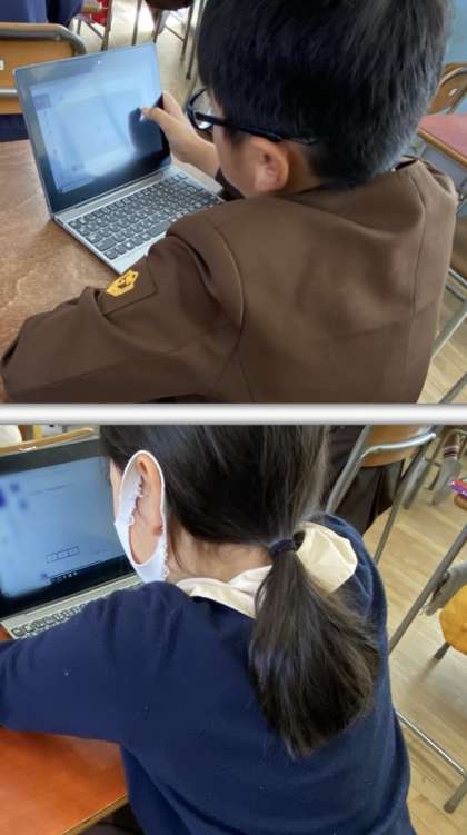 タブレット端末で、算数や国語の苦手な部分の復習をしました。