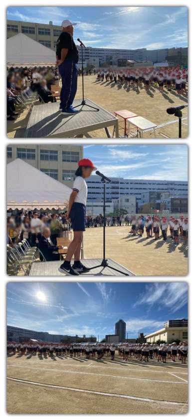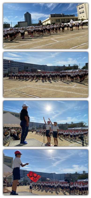 応援団代表の力強い選手宣誓、運動会の歌から始まりました。