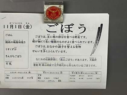 本日(11月1日)の給食