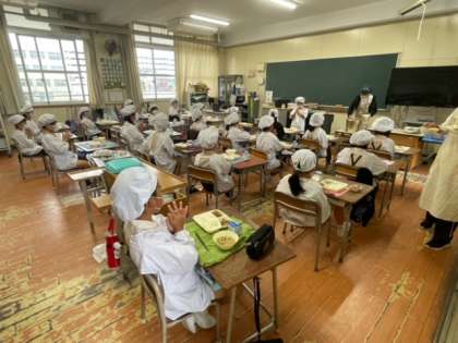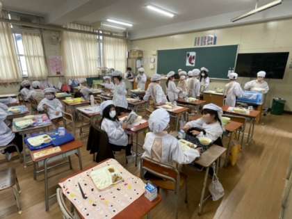 給食の楽しいひと時です。