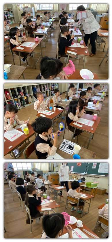 歯科衛生士の方に来ていただいて、歯磨き指導をしていただきました。歯を磨くポイントや歯ブラシの扱い方を教えてもらって、それぞれが歯ブラシを使って実践しました。