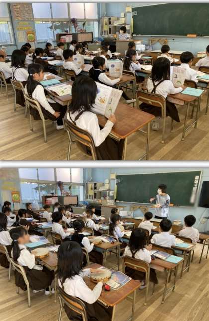 音楽では、歌ったり、カスタネットやタンブリンなどの楽器で曲に合わせてリズム打ちをしたりしました。