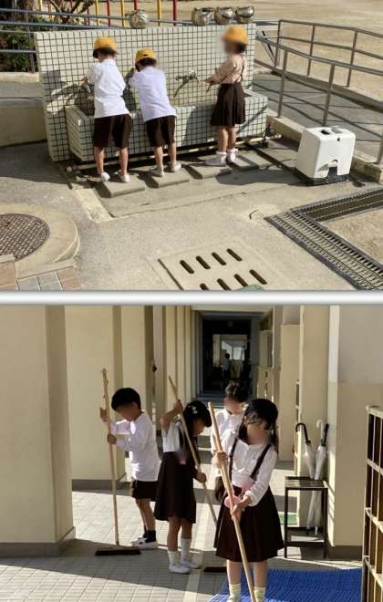 それぞれの分担場所を丁寧に掃除しています。