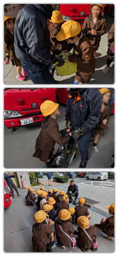 消防署では、体験をさせていただいたり、質問に応えていただいたりしました。