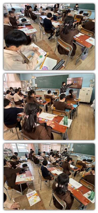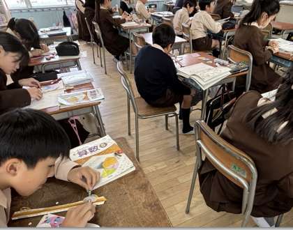 算数では、円の周りの長さを直径別に、教科書についているキットと鉛筆を使って、転がしながら測りました。