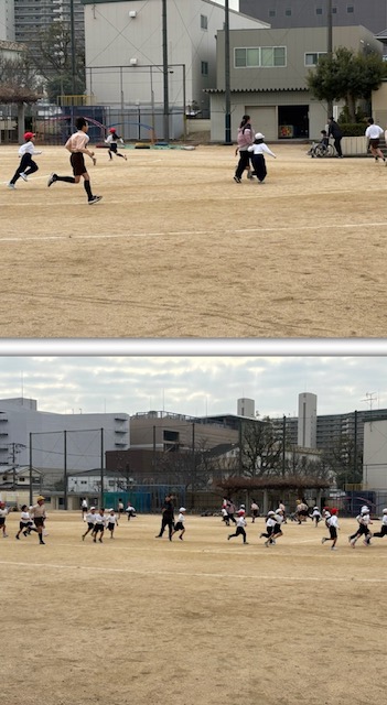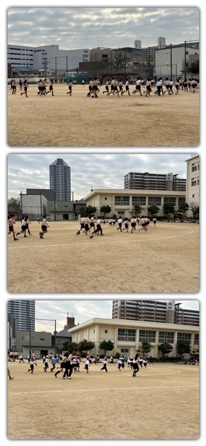 今日は、1・6年生が、かけ足タイムで運動場を走りました。