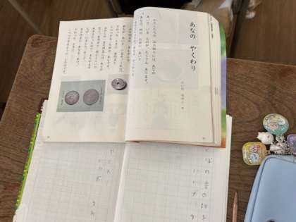 「あなのやくわり」の説明文をはじめ、中、終わりに分けて、文章の中に大事な言葉と文を探しました。