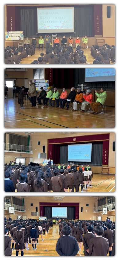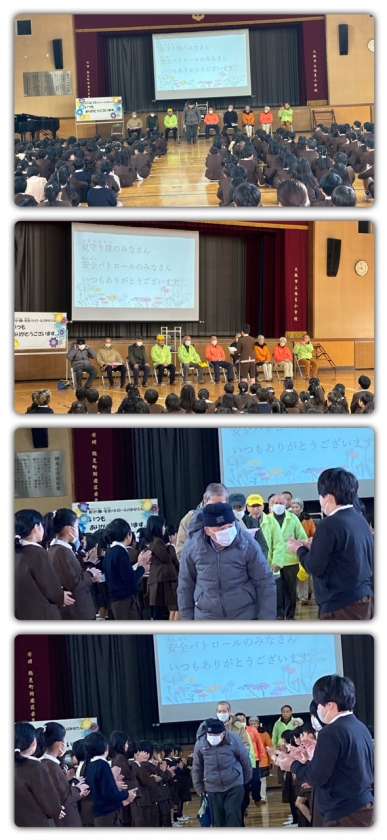登下校の見守りをしていただいている見守り隊の方々への感謝を伝える「ありがとう集会」を行いました。