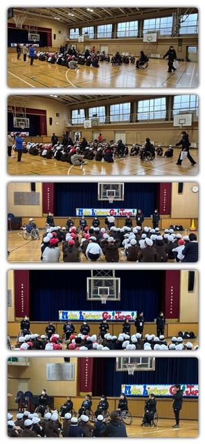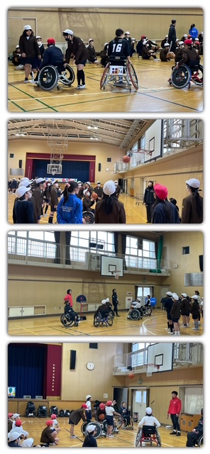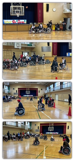 車椅子バスケットボールの全日本代表的なチームの人に来ていただいて、車椅子バスケットボールの体験をしました。