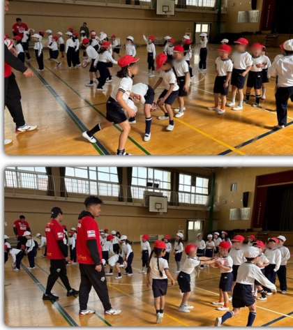 レッドハリケーンズの先週の方に来ていただいて、ラグビーについて教えていただいて、体験をしました。