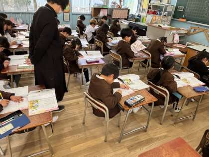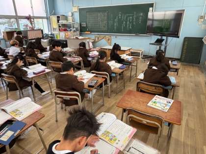 道徳では、「休み時間」の物語を読んで、どのように過ごせば良いかを考えて、ノートに意見を書きました。