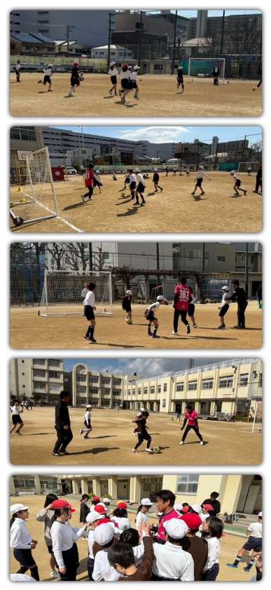 子どもたちは、点を入れてもすぐに点を取られ、最後は同点で終わりました。