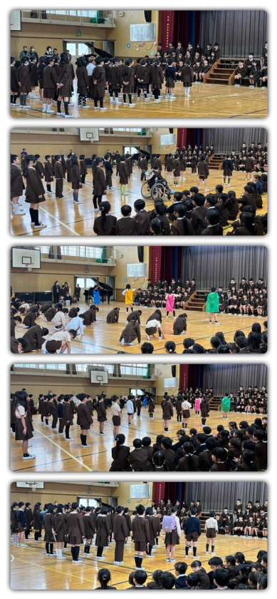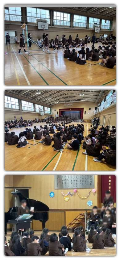 6年生からは、お礼として、「名探偵コナンのメインテーマ」の合奏と、「翼をください」の合唱をしました。
