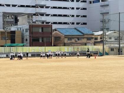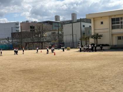 今日は、とても寒い1日だったので、鬼ごっこなどのゲームをして体を温めた後、ベース型のボール蹴りゲームをしました。
