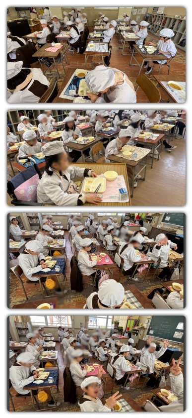 今年度最後の給食でした。笑顔いっぱいで、とてもよく食べていました。