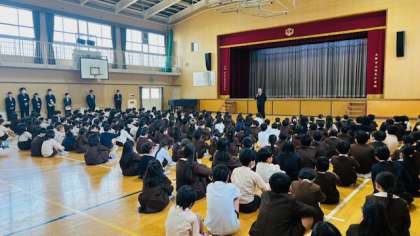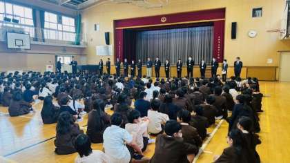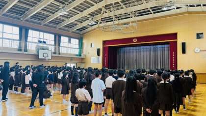 いよいよ令和七年度がスタートしました。朝から元気いっぱい、笑顔いっぱいで登校してくれました。今年度最初の挨拶では、元気な声にこの一年も頑張るぞという意気込みを感じました。みんなで思いやりをもちながら、切磋琢磨できる学校にしましょう。