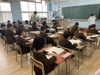 1組は、今年度から始まった社会科で大阪市についての学習です。2組は、国語科で「すいせんのラッパ」という4月の学習にふさわしい春の物語です。