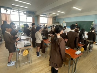 下:5年1組が「believe」を歌っていました。歌う前にどう歌うかを考えて歌っていました。今日が初めてみたいでしたが、なかなか上手に歌っていました。