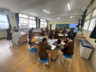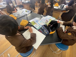 5年2組が理科で雲の学習をしていました。空の面積に対して雲の面積が8割ほどあっても天気は「晴れ」と決まっています。