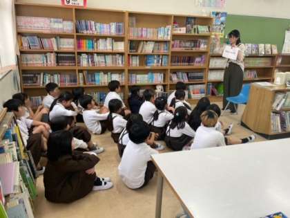 図書室に行き、改めて部屋の使い方や本の扱い方など色々と説明を聞きました。最後に司書の先生に読み聞かせをしていただきました。