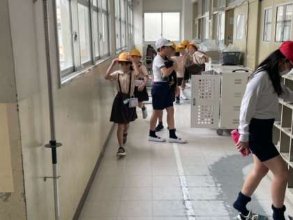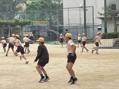 休憩時間の始まりです。グラウンドに急いで向かう様子です。「よく学び、よく遊ぶ」休憩時間は、子どもたちにとって、とても大切な時間です。
