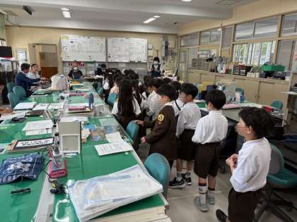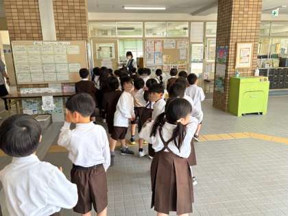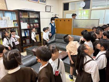 1年生が、学校探検をしていました。職員室や校長室など色々な場所があり、興味津々でした。