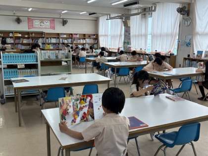 下: 5年生、図書の時間です。