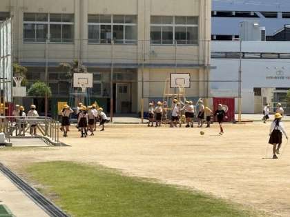 とても良い天気です。少し動くと汗ばむかもしれませんが,外で思いっきり遊んでください。