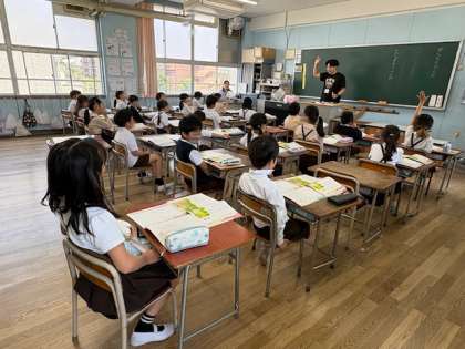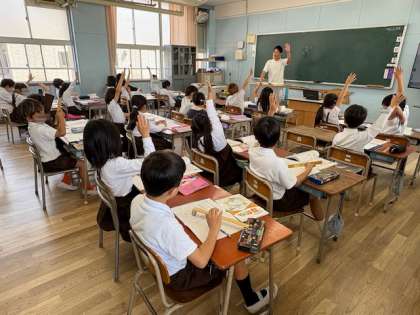 上:2年1組では、道徳の授業をしていました。登場人物の行動について考えていました。