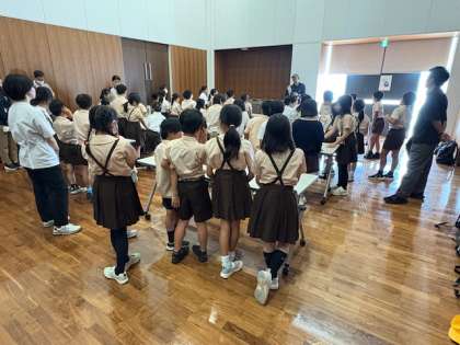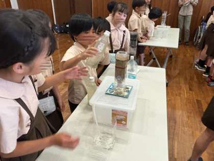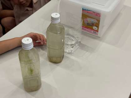淀川の水をろ過してきれいな水にする実験です。わかりますか。