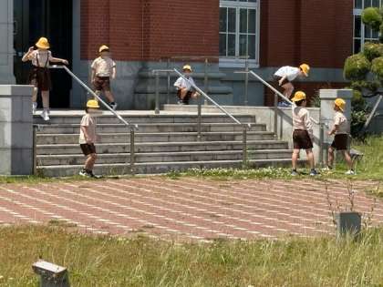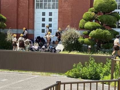 食事も終わり帰るまで少しの時間、自由行動です。元気いっぱい、走り回っています。見学で説明を聞いている時は、私語もなくしっかり質問もして、すごく良い見学態度でした。TPOにあわせた行動がとれています。
