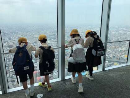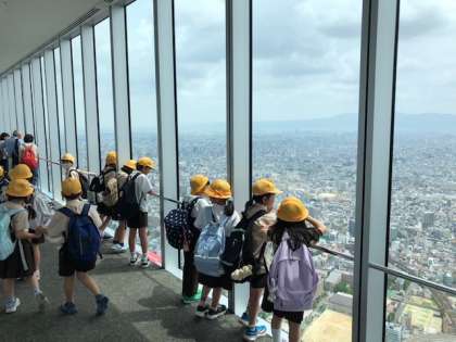 ハルカスから大阪の街を観察しています。教科書に出ている建物は見つかったかな。