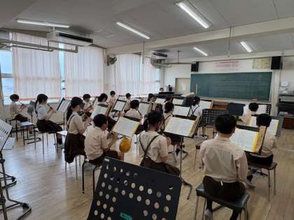 6年2組がリコーダーで合奏をしてました。流石、6年生、美しい音色でした。
