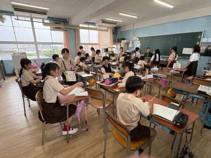 5年生では、休み時間の終わる直前でしたが、ノートの点検をしていました。