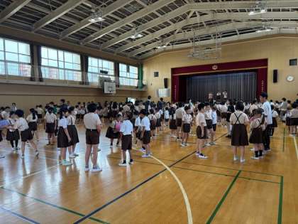 おはようございます。今日も元気よく挨拶をしてくれています。児童集会では、ボールを使って全校児童で楽しみました。今日も一日、元気いっぱい、笑顔いっぱいで頑張りましょう。