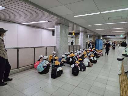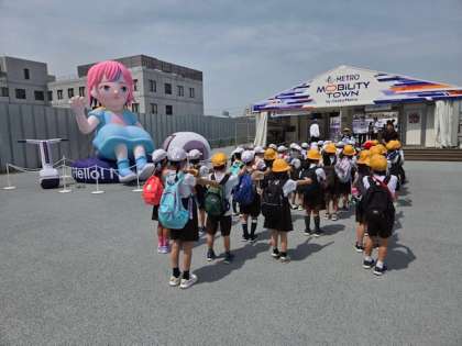 電車に乗るマナーもしっかりでき、整然と移動ができました。森ノ宮にある「e METRO MOBILITY TOWN」に到着しました。