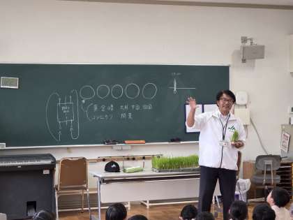 出前授業 5年生田植え体験(あいにくの天気で講義のみになりました。)