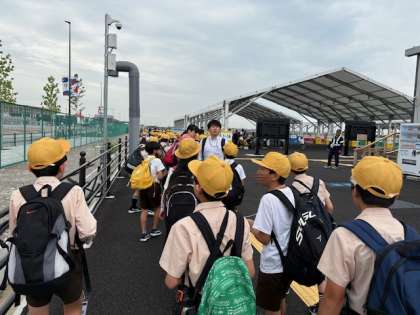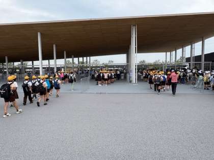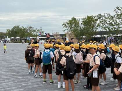 56年生が大阪関西万博に来ています。梅雨の合間で曇りの天気です。予定の10時より少し早くに入場できました。