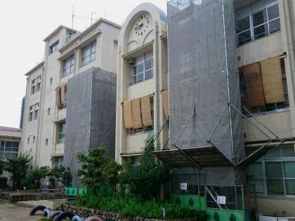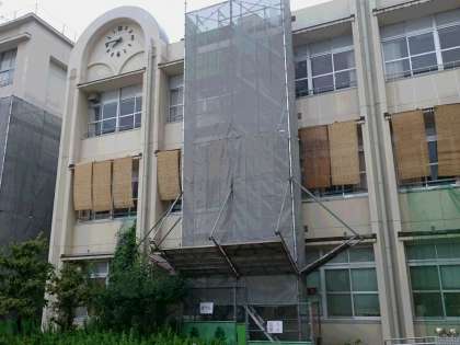それに伴い、6月25日の土曜日に足場が設置され、いよいよ工事が始まりましたが、本格的な工事は、子どもたちの安全を考えて夏季休業日中に行います。