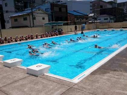 3年生は、4時間目にプールに入り、バタ足の練習に励みました。