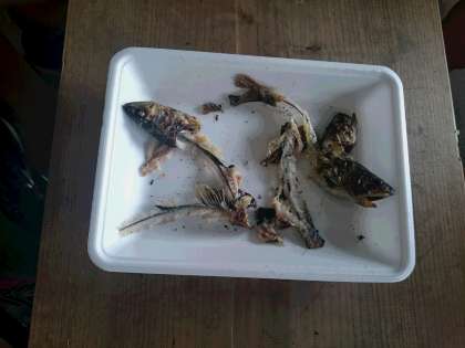 「魚つかみ」で捕ったアマゴとヤマメは、すぐに焼かれて、みんなのおなかの中に入ってしまいました。