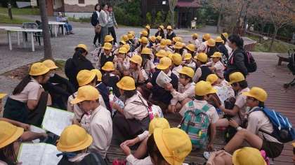 モクモクファームでお弁当を食べた後、活動班になって園内を楽しみました。
