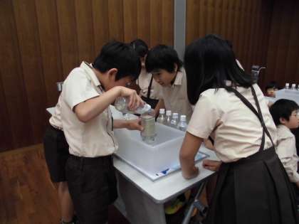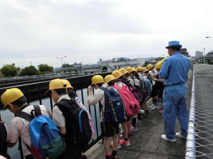 5月17日、柴島浄水場に行きました。浄水場の中を詳しく説明してもらいました。にごった水を透明のにおいのない水にする実験をグループに分かれてしました。淀川の水が水道から出てくるまでの道すじをしっかり学習しました。