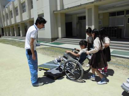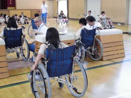5月19日、大阪市立リハビリテーションセンターの方が来校され、車いすの体験をしました。