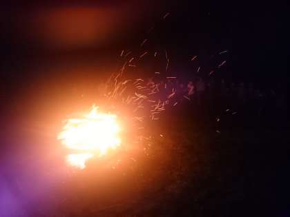 林間学習の夜の最大のイベントは、何といってもキャンプファイヤー。写真ではあまりよくわかりませんが、歌あり、ダンスありで、スタンツやゲームで大変盛り上がり、先ほど終わりました。
